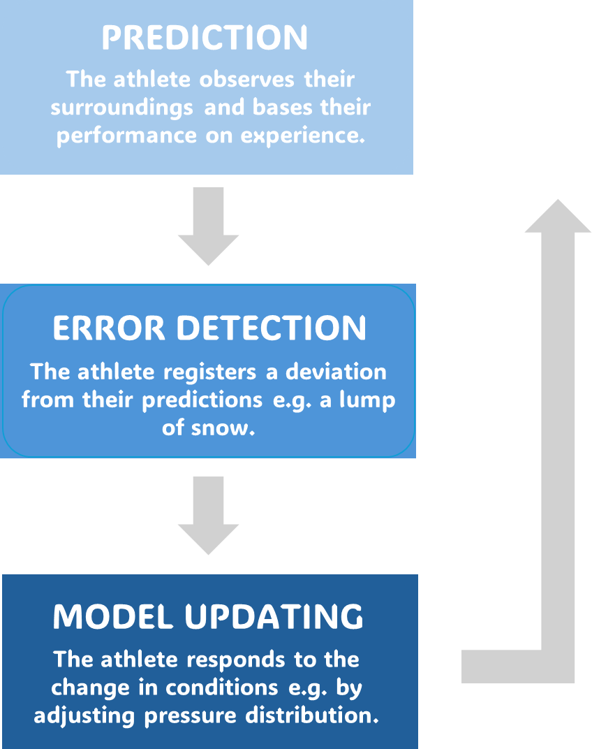 In addition to the importance of developing technical elements, there is increased focus in new research on cognitive influence. Researchers have created a framework to inform training strategies for alpine skiers by linking the functions of the brain and body together. They focused on a key skill linked to performance, known as ‘updating’, where athletes, particularly in variable environments subject to course changes, must take in sensory information and apply it to a motor command, like adjusting pressure distribution. This pattern of prediction, error detection and model updating can be developed by focusing coaching on terrain specific drills, working alongside the brain's natural processes to enhance traditional techniques (Boraxbekk, Supej and Holmberg, 2026).